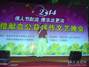 2月14日晚,河源市獻(xiàn)血辦、河源市中心血站、河源市無償獻(xiàn)血志愿工作者服務(wù)隊(duì)在廣晟廣場舉行“情人節(jié)獻(xiàn)血、情濃血更濃”無償獻(xiàn)血公益宣傳文藝晚會。匯源集團(tuán)給予了協(xié)助,提供了150份禮品。