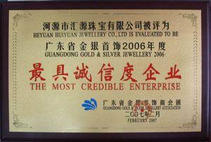 2007年2月28日,賴運(yùn)宏董事長參加在東莞富盈酒店舉行的廣東省金銀首飾商會(huì)年會(huì)。年會(huì)上,我集團(tuán)匯源珠寶公司榮獲《廣東省金銀首飾2006年度最具誠信度企業(yè)》光榮稱號(hào)。