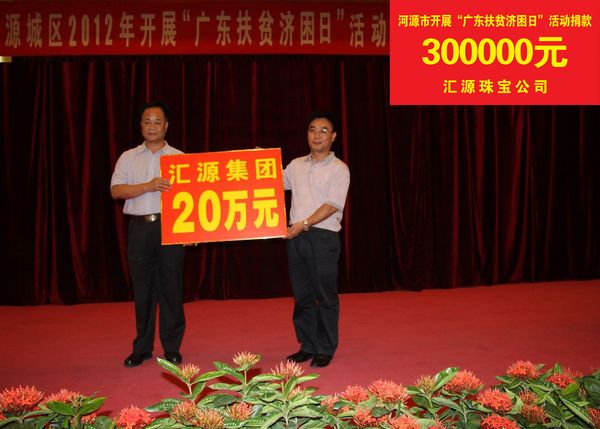 2012年6月30日,在“廣東省扶貧濟困日”活動中,匯源集團捐款20萬元,匯源珠寶捐款30萬元。