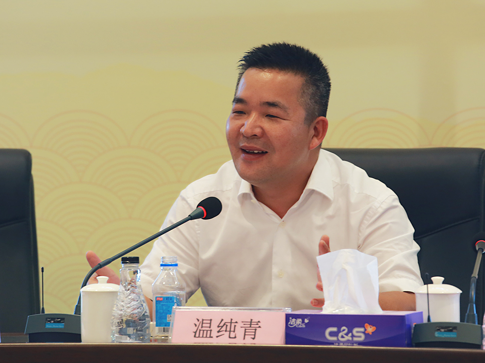 座談會上,商會會長溫純青熱烈歡迎團體會員單位的“自家人”歡聚商會談心交流,并感謝各團體會員近年來對商會各項工作的大力支持。